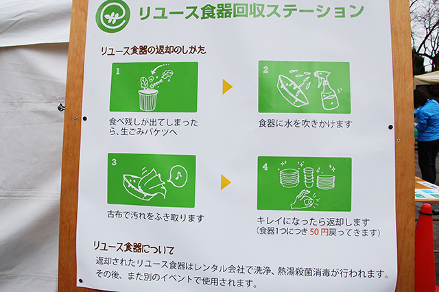 レンタルお皿「リユース食器」もありました。どちらも使用後はここで洗う事ができます。