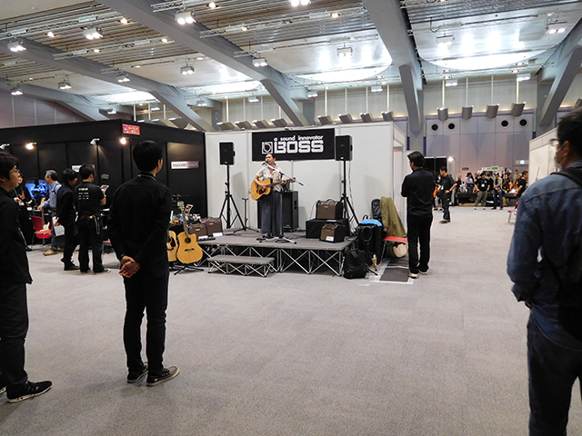 ステージ、ホールのライブ。出展各ブースでのデモ演奏。